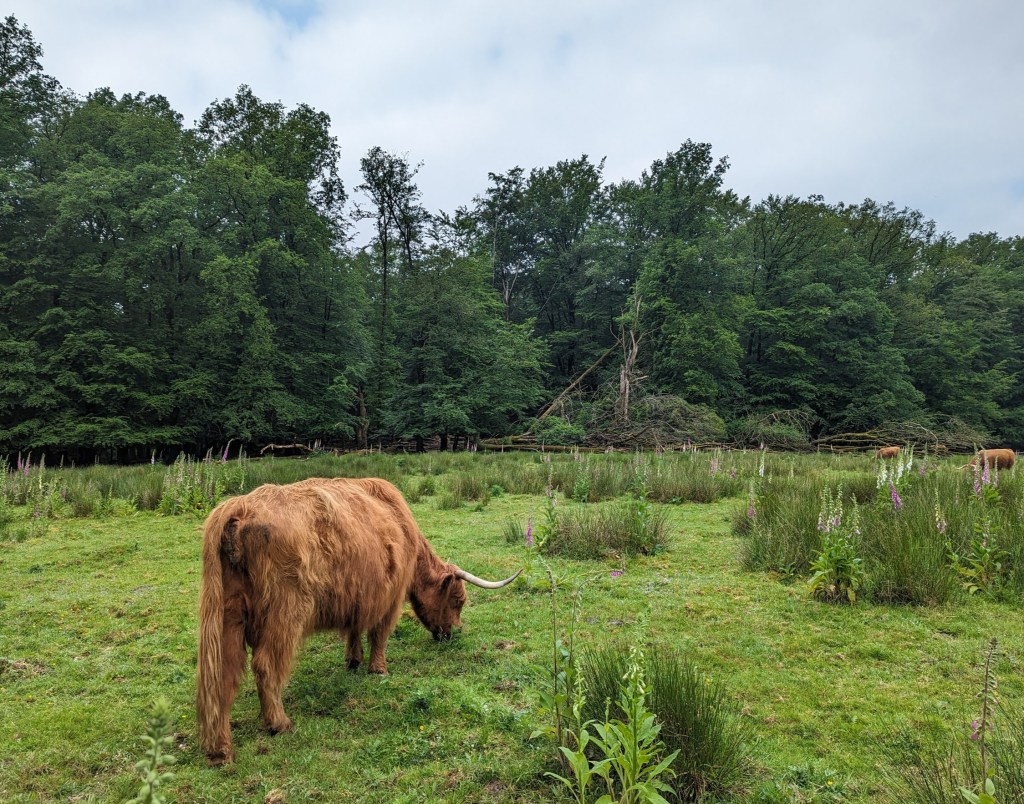 Het was heerlijk wandelweer, op het eind een klein beetje regen maar door de bomen merkte je dat nauwelijks. We zagen veel vingerhoedskruid onderweg, altijd een kleurig gezicht.