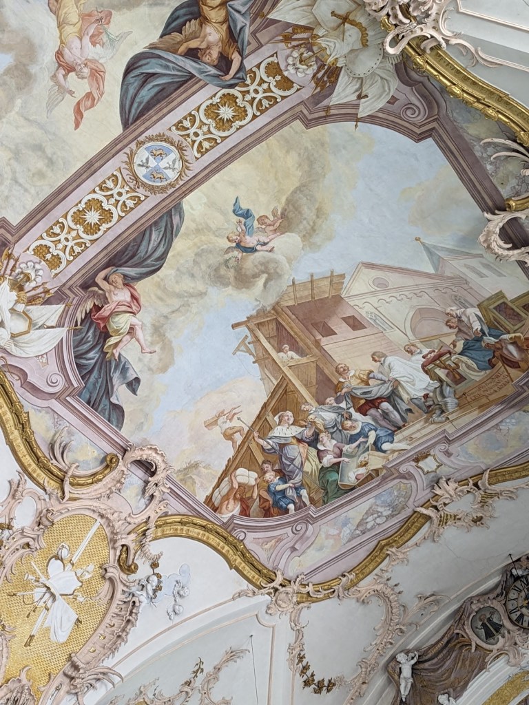Terug van de wandeling hebben we nog even in de kerk gekeken waar net de dienst was afgelopen, op de tweede foto zie je een deel van het plafond.