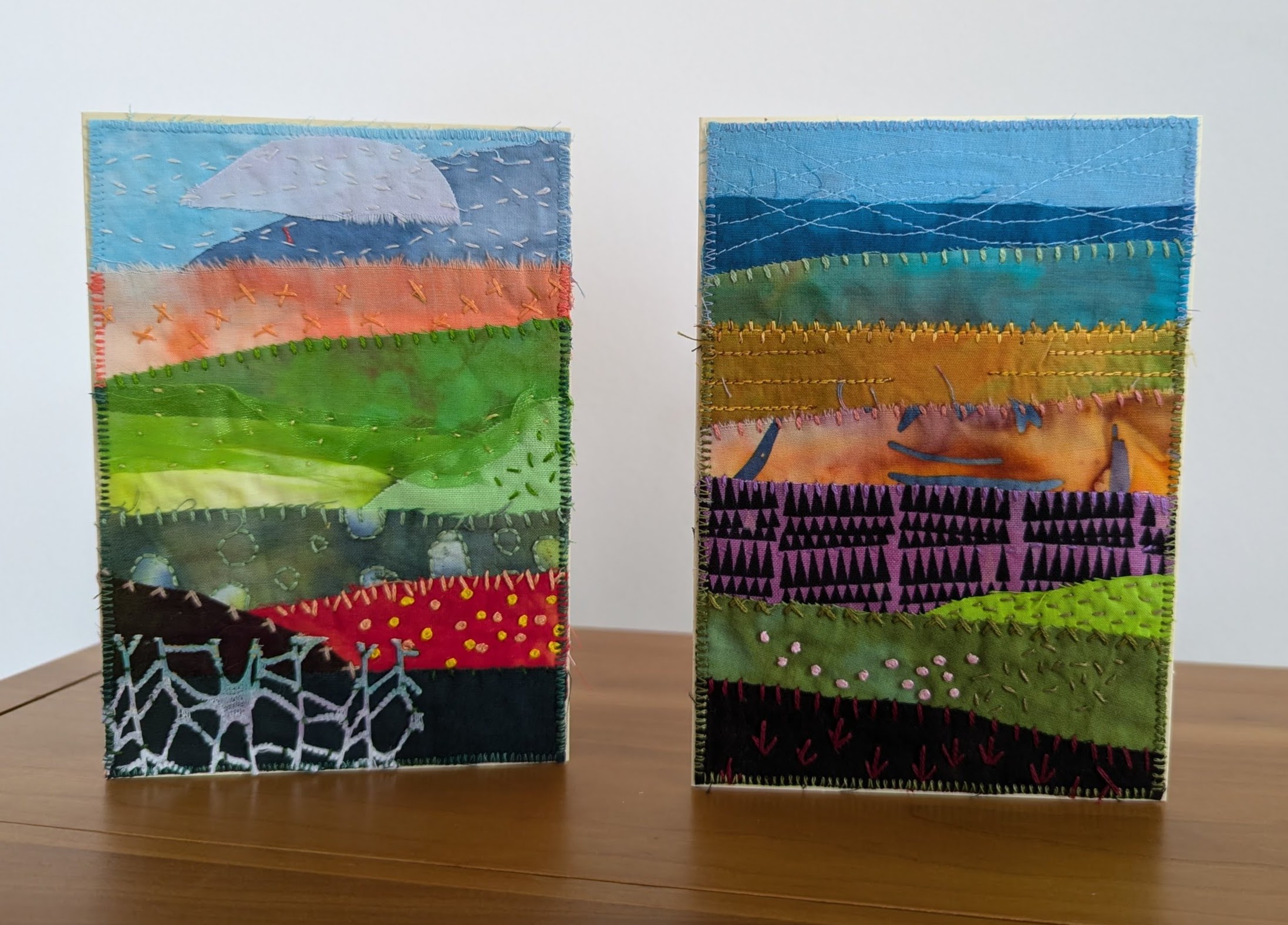Wat zouden we zijn, zonder lapjes en garen? Je landschapjes zijn echt leuk geworden!