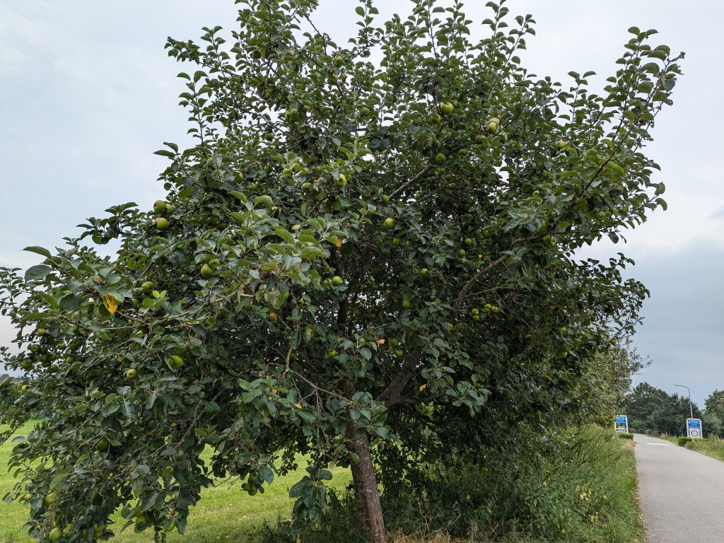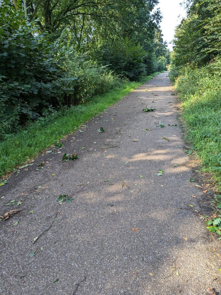 Maandag en dinsdag waren heel warme dagen, gistermiddag was de gevoelstemperatuur zelfs 37 graden, maar vandaag werd het een stuk minder warm, goed weer voor een wandeltocht. We liepen vanuit huis naar de Oude IJssel, op de weg lagen overal bladeren en takken, gisteravond had het flink gewaaid.