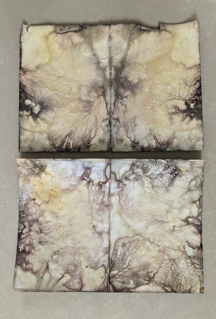 Wat zijn ze prachtig, de ecoprints en ook met de bladeren. Geweldig!