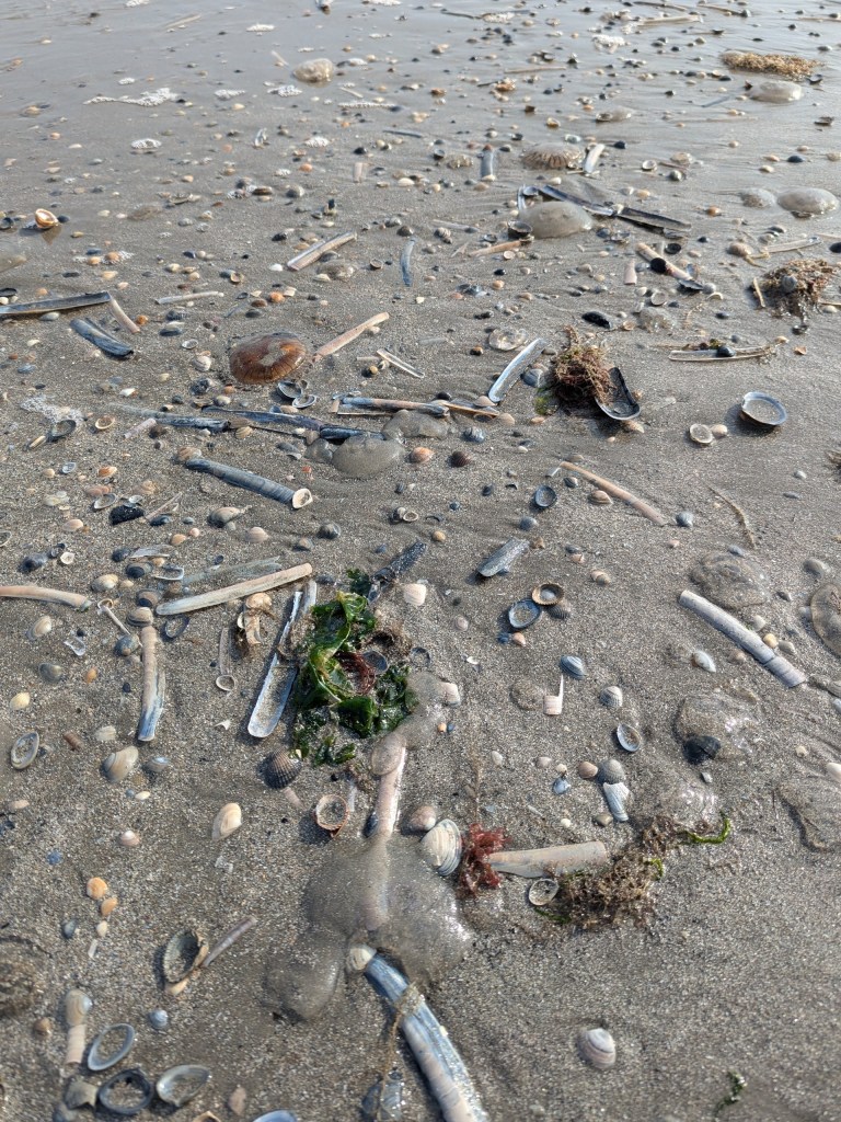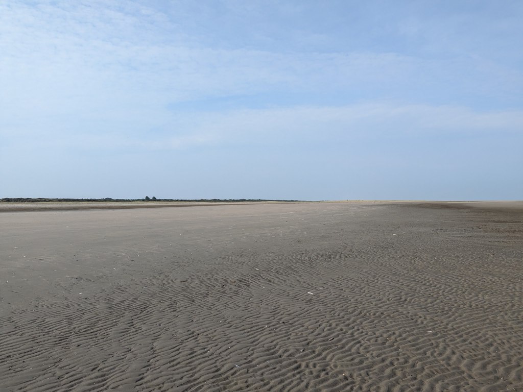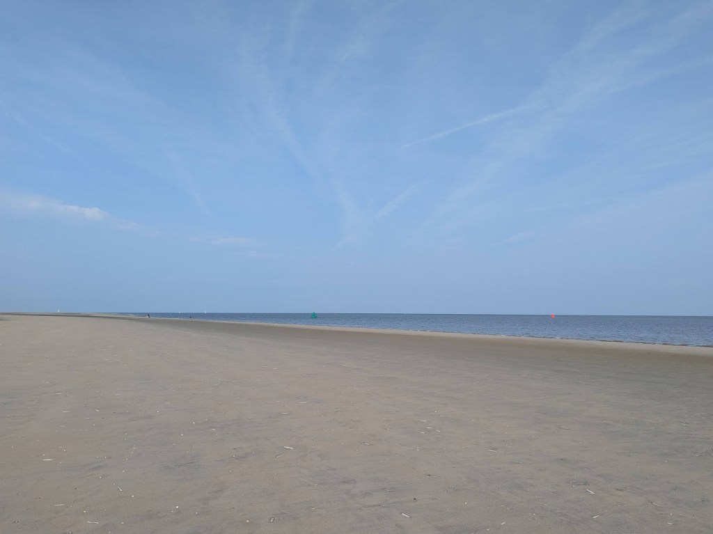Hierna reden we naar de grote parkeerplaats bij het strand en begonnen we aan een een deel van de Koploper. Het eerste stuk liepen we door de duinen en terug over het strand. Het was nog redelijk vroeg, het strand leek uitgestorven.