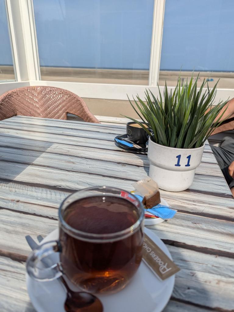Tegen de tijd dat wij onze koffie en thee op hadden waren bijna alle tafeltjes bezet. Terug op de parkeerplaats besloten we nog even naar het Vogelobservatorium Tij bij Stellendam te gaan.