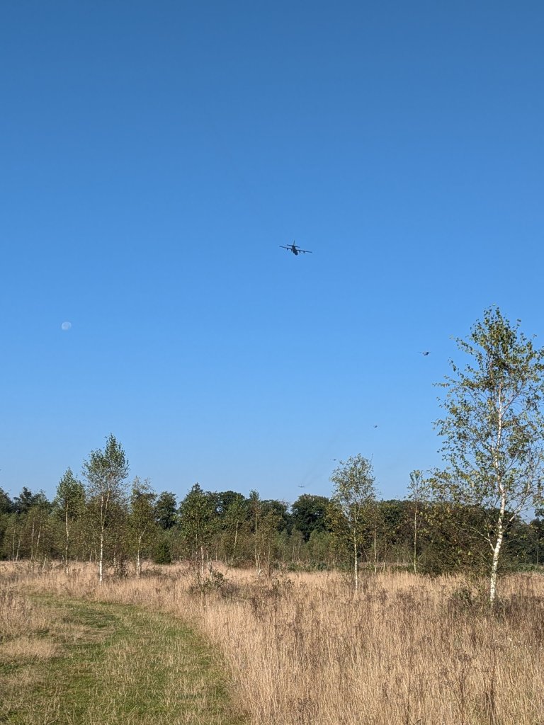 Ze vlogen steeds rondjes, we werden helemaal omcirkeld door vliegtuigen en heel in de verte zagen we af en toe dat er parachutisten gedropt werden, maar dit was moeilijk om op de foto te krijgen.