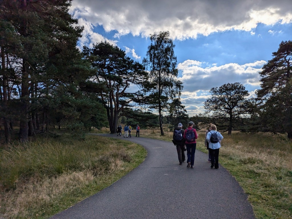 Vandaag hebben we een tocht gelopen over de Veluwezoom onder leiding van twee gidsen van Natuurmonumenten. We begonnen om 10 uur bij Paviljoen de Posbank en waren om 4 uur weer terug, toch liepen we maar 14 km omdat we heel vaak stil stonden als onze gidsen weer wat te vertellen hadden.
