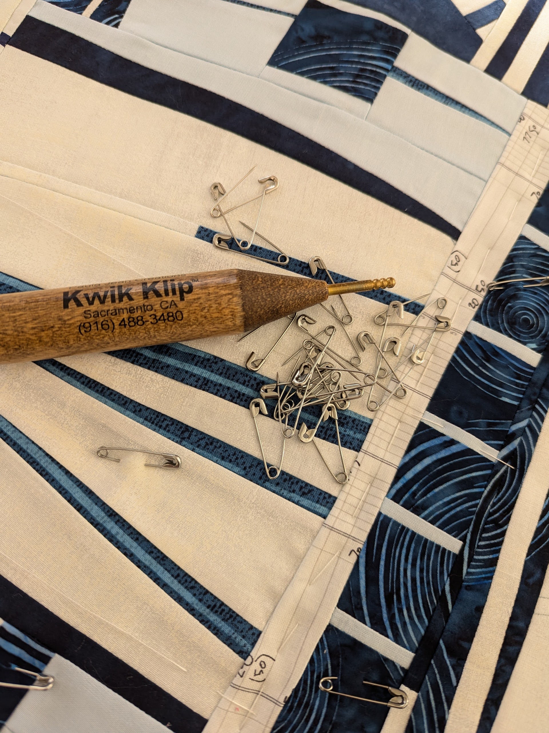 Het is weer de tweede vrijdag van de maand, dus tijd voor een tip. Deze keer heb ik een tip voor de naaisters onder ons. Ik was bezig met het rijgen van de drie lagen van mijn quilt, dat doe ik gedeeltelijk met garen en de rest met quiltspelden.