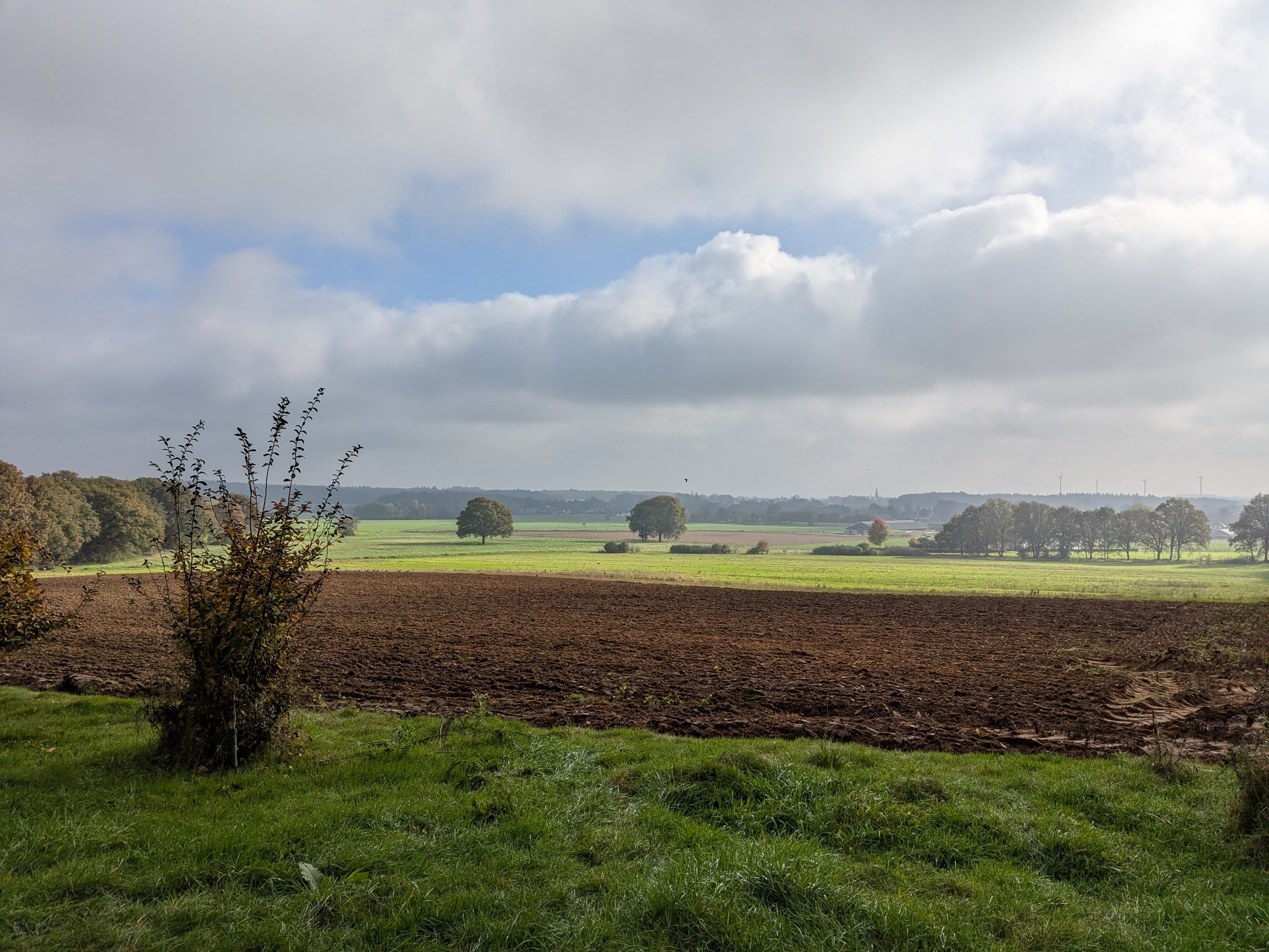 Het stuk langs het Grenskanaal was het minst leuke stuk, erg smal en modderig en daardoor nogal glibberig en dat wel zo’n 2 km lang maar gelukkig bleef ik op de been. Langs Wijngoed Montferland kwamen we even later weer in Stokkum uit met 17,5 km op de teller.