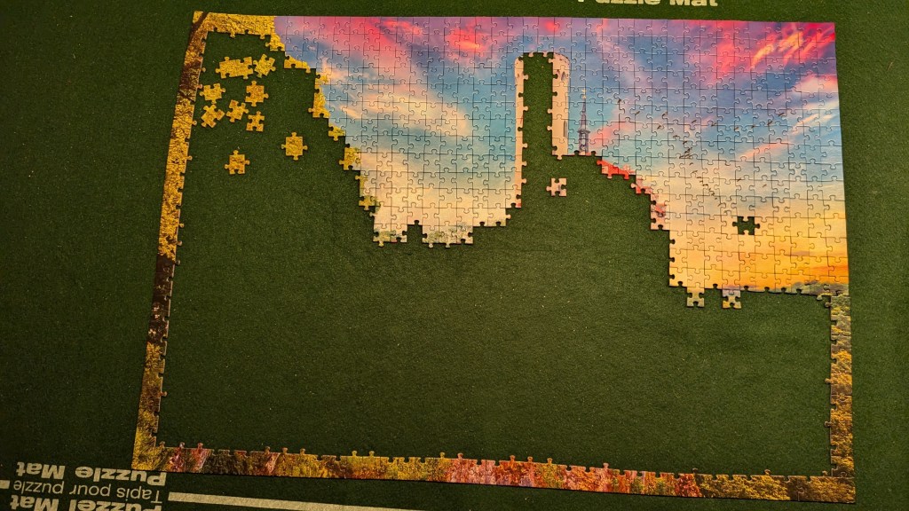 Gisteren hadden wij bijna de hele dag regen en een harde wind, naast het doen van wat boodschappen ben ik niet meer de deur uit geweest. Ik had ook even geen zin meer om kerstkaarten te maken, de laatste weken heb ik er zo’n 60 gemaakt, en heb lekker zitten puzzelen. Vorige week heb ik al een Wasgij puzzel afgemaakt en nu ben ik aan kasteel Liechtenstein bezig, gekocht bij de kringloopwinkel.