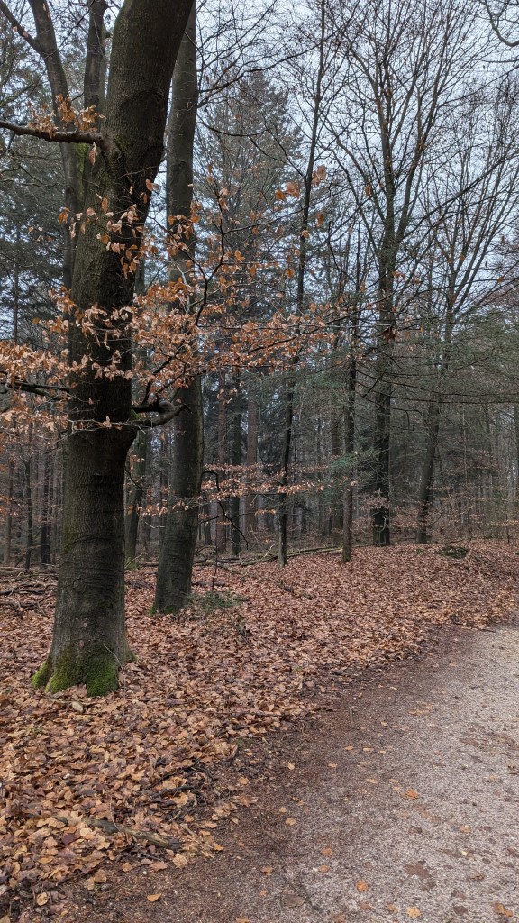 Vanmorgen zijn we eerst een wandeling gaan maken van 10 km vanuit Dieren, het weer viel mee, vooral omdat we door het bos liepen, dan heb je geen last van wind, wel was het wat mistig. Halverwege hebben we wat gedronken bij de Carolinahoeve.