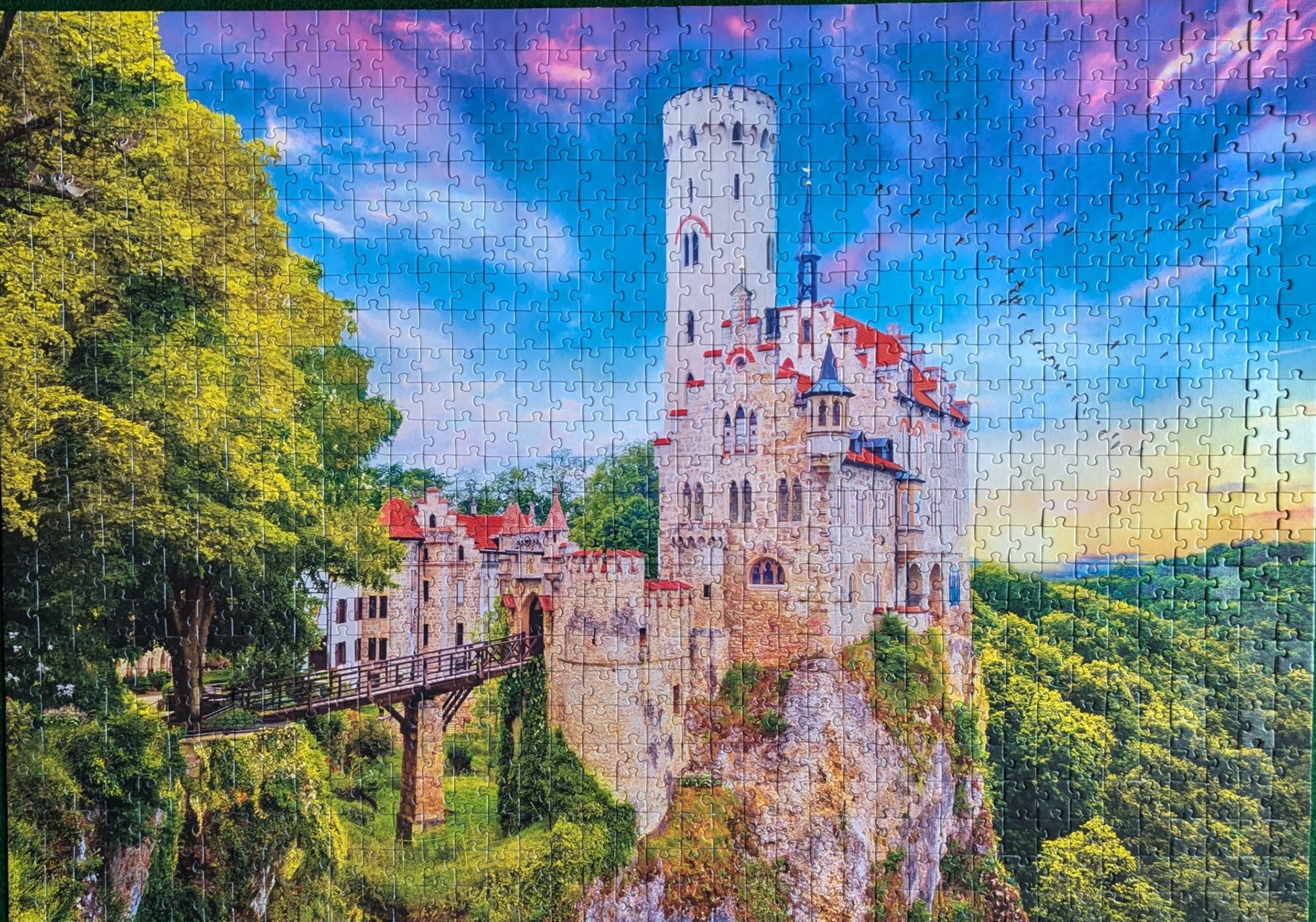 Mijn puzzel is inmiddels af, vooral het stuk met al het groen was niet makkelijk maar ik doe dit graag, elke dag een klein stukje.