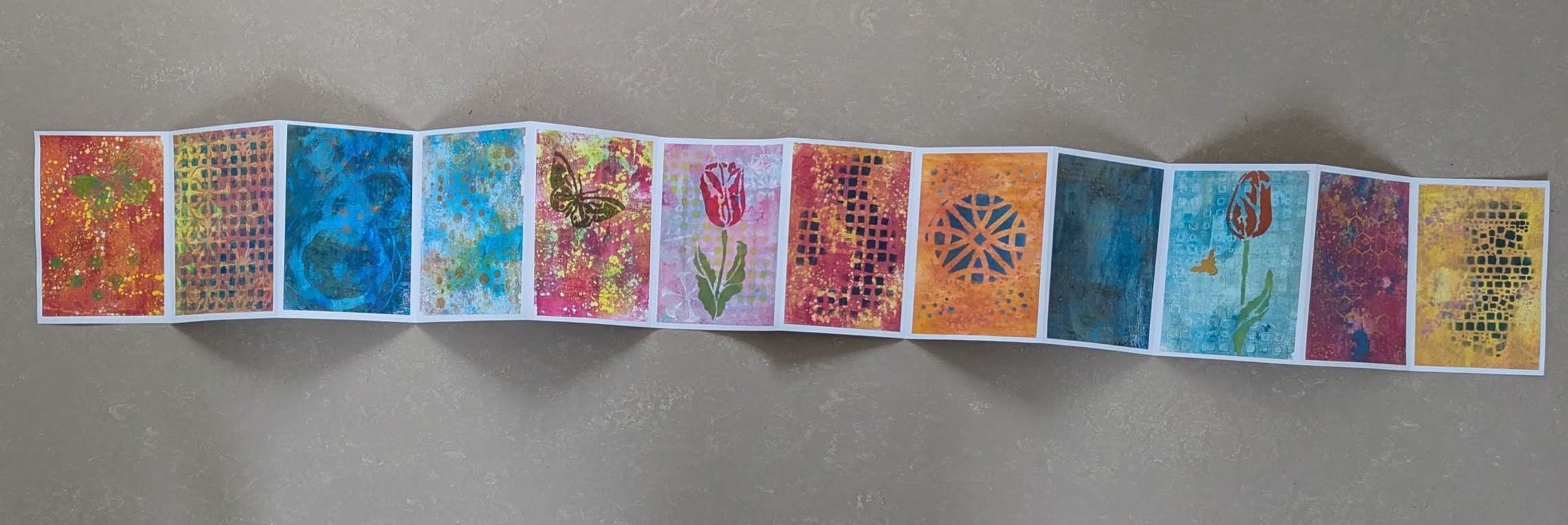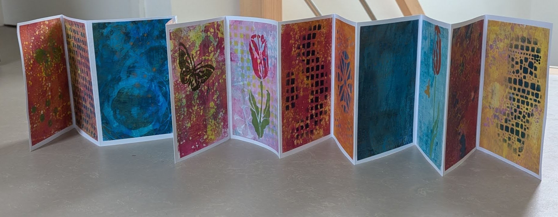 Vorige maand maakten Mieke en ik allebei een leporello met gelli prints en Elizabeth opperde dat dit nog gevuld kon worden.