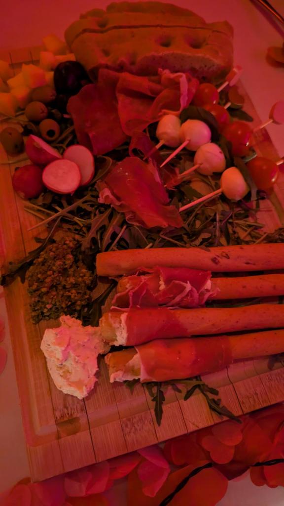 Het diner vond plaats in het gebouw van de Evangelische Gemeente in Dieren en we waren met ongeveer 85 gasten. De zaal was sfeervol ingericht met lange tafels en heel veel hartjes. Foto’s maken ging niet zo goed, voor de sfeer was er weinig verlichting tijdens het eten, gelukkig kon je nog wel zien wat er op je bord lag. Tussendoor werden er wat filmpjes vertoond over het project. Het was ontzettend goed georganiseerd en het eten was heerlijk. We begonnen met een plank met allerlei kleine hapjes, daarna een lekkere pasta en als toetje kregen we frambozenbavarois, hulde voor het keukenteam!