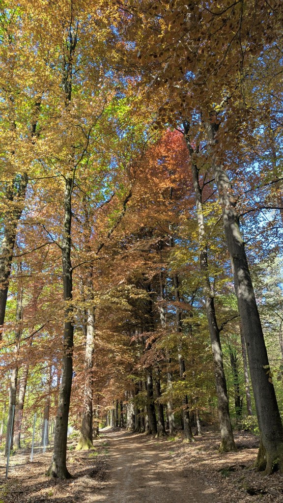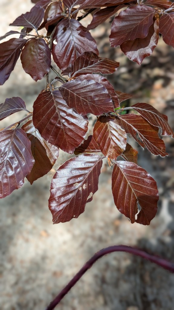 Het bos is heerlijk als het warm is! Wat een mooie foto van die rode beuk bladeren!
