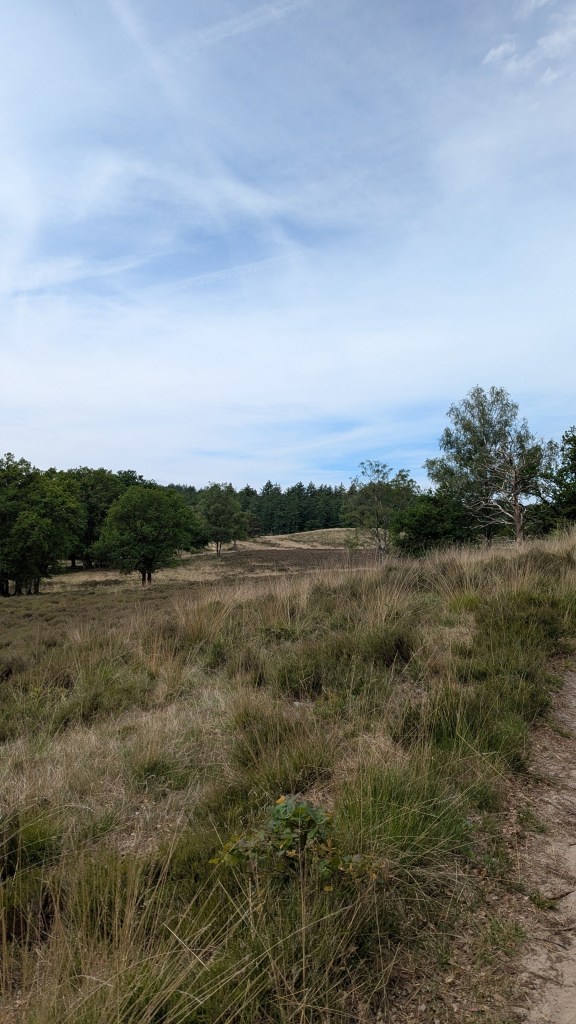 Na de lunch liepen we een heel stuk langs de hei, we zijn de warmte nog niet gewend en werden behoorlijk moe, ook doordat er nogal wat hoogteverschil was.