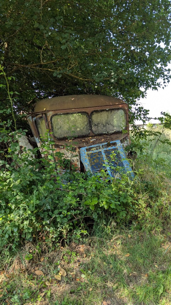 In Frankrijk zie je heel vaak oude karren en auto’s op het veld of erf staan om helemaal weg te roesten.
