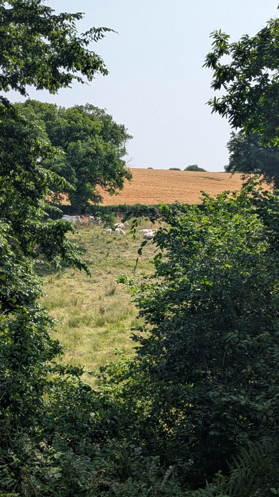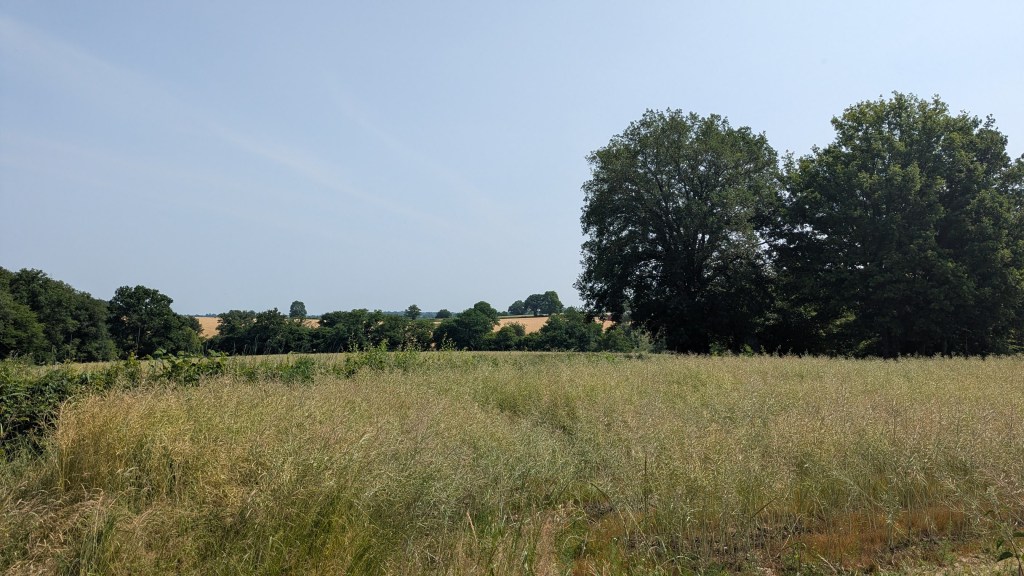 Het was een leuke tocht, veelal liepen we door holle paden die gemaaid waren maar af en toe was een pad niet gemaaid zoals op de linkerfoto en ik zat dan ook al snel onder de schrammen en rode plekken, maar dat wende op den duur.