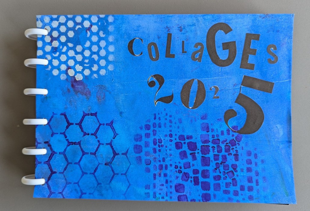 Er zaten ook wat ringen bij om een boekje in te binden, ik mocht haar speciale pons daarvoor lenen en heb van de collages van begin dit jaar een boekje gemaakt.