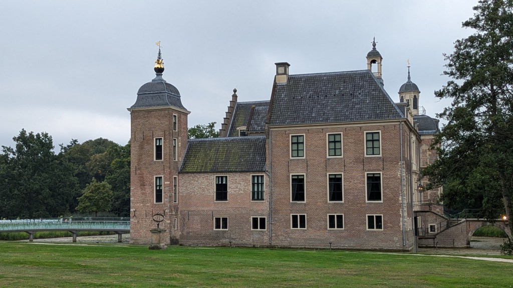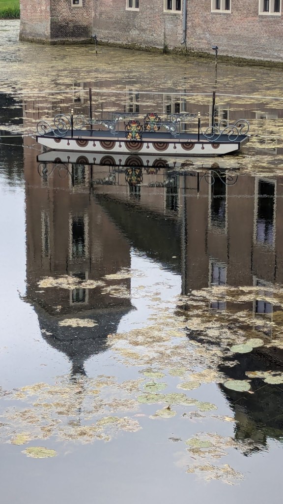 Gisteren liepen we weer een wandeling uit het boekje: de mooiste landgoedwandelingen in de Achterhoek, en wel het Wierssepad van 15 km. Het eerste stuk was het nog wat fris, maar langzamerhand kwam de zon steeds vaker door en werd het nog behoorlijk warm. We hadden dit pad al eens eerder gelopen, deze keer heb ik niet veel foto’s gemaakt. Eerst langs het kasteel waarbij me een trekpontje in het water opviel.