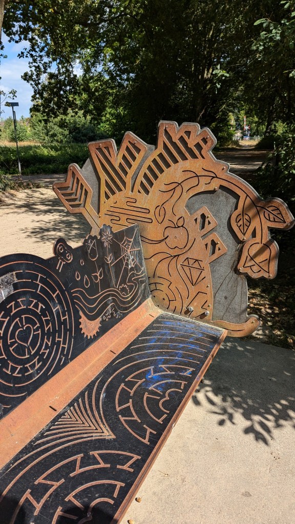 Even voor het eind van de tocht hebben we nog even op een kunstbankje gezeten.