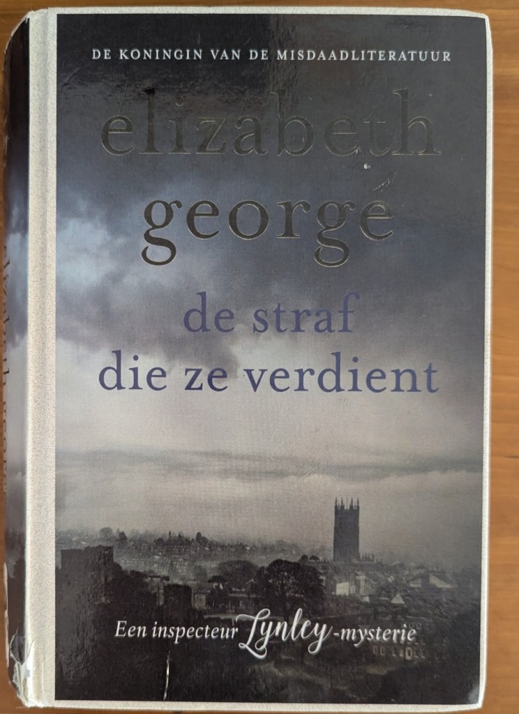 Vervolgens las ik weer eens een boek van Elizabeth George: De straf die ze verdient. Zij heeft al ontzettend veel boeken geschreven met inspecteur Lynley en brigadier Havers in de hoofdrol en ik denk dat ik de voorgaande allemaal heb gelezen. Ik ben nu aan haar laatste boek begonnen. Het zijn wel dikke pillen, deze was 725 blz. maar ik vind het altijd heerlijke boeken. Diverse boeken zijn ook als serie op de tv geweest.