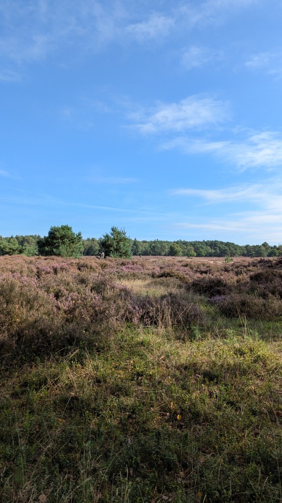 Nog aan het begin hadden we een verkeerd pad gekozen zodat de routebeschrijving niet meer klopte, maar een stuk verder kwamen we weer op de juiste route terecht. Het was een prachtige tocht met stukken door het bos en langs de heide.