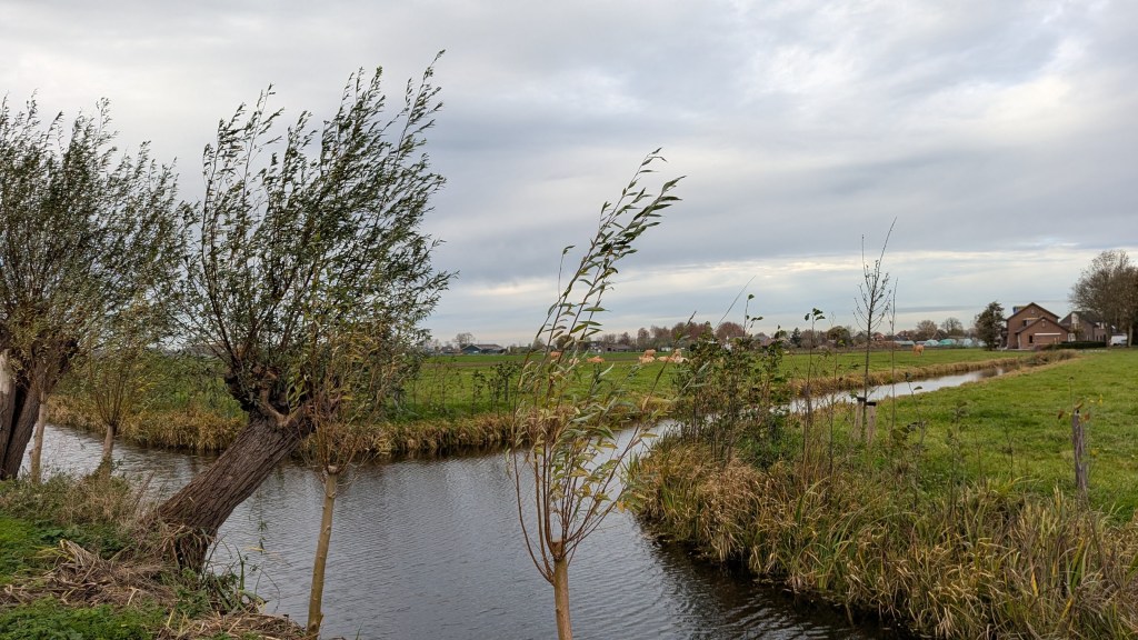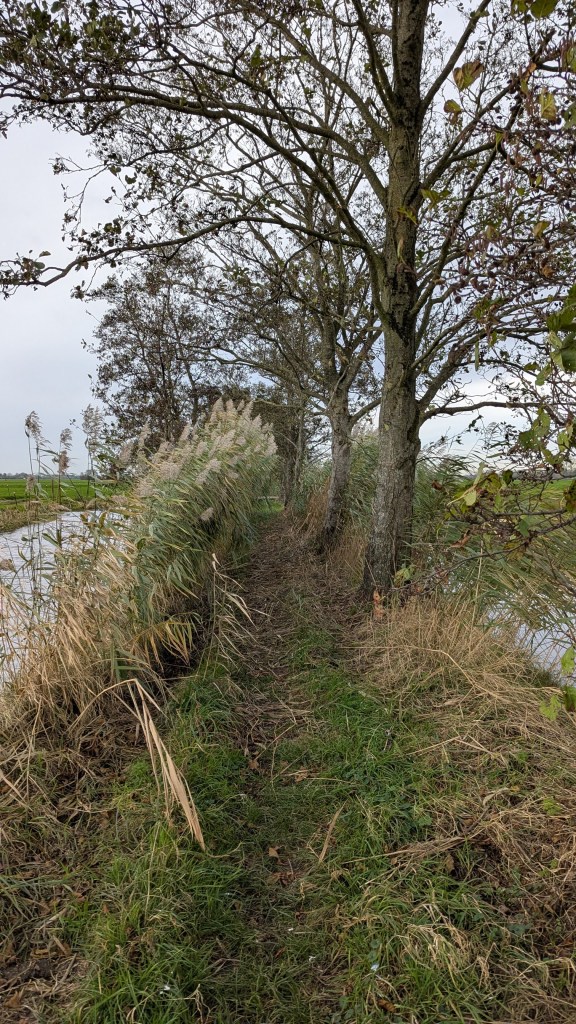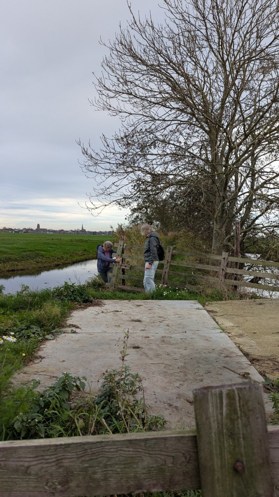 Donderdag gingen we met de auto naar Oudewater om daar de trage tocht Oudewater van 15 km te lopen. We liepen direct de Tiendweg op met aan weerszijden sloten en knotwilgen, dit pad was wel 4,5 km lang met regelmatig hekken waar we ons omheen moesten werken.