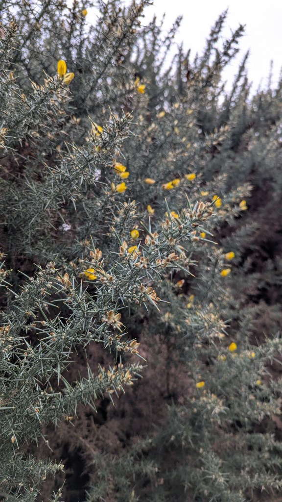 Door al het klimmen kregen we het behoorlijk warm, alleen in de wind voelde het wat kouder maar verder was het heerlijk weer om te wandelen. We passeerden een diepe kuil in het oude bosgebied Het Asselt en voorbij Koepel de Kaap liepen we tussen de gaspeldoorns door die hier en daar nog bloeiden met gele bloemetjes.
