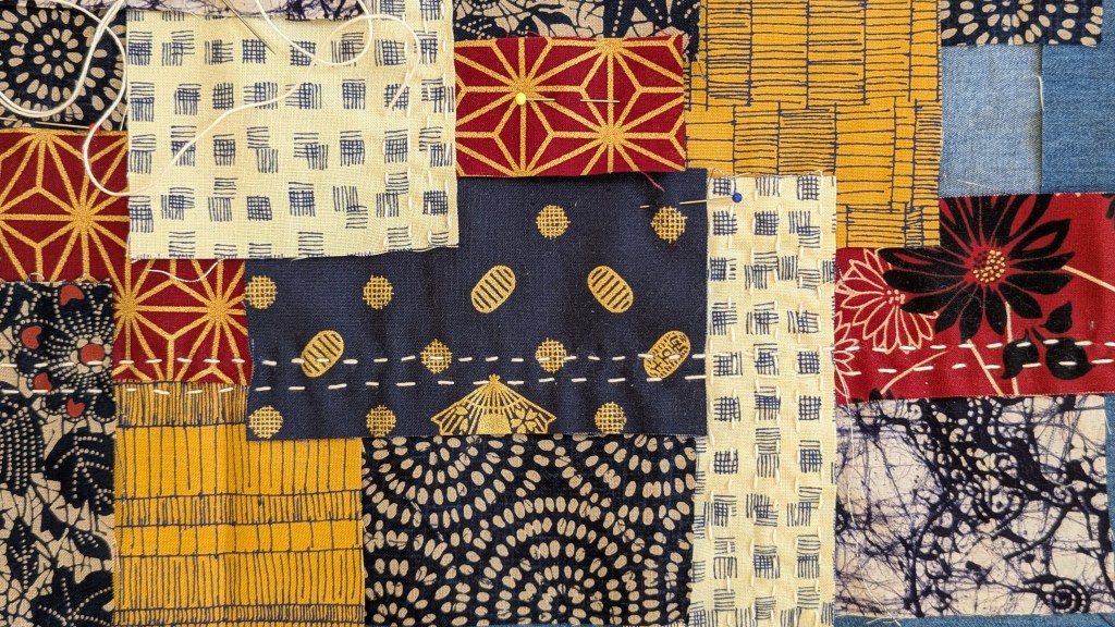 Het is heel wat sneller en makkelijker werken dan het fijne Sashiko borduren van afgelopen zaterdag!