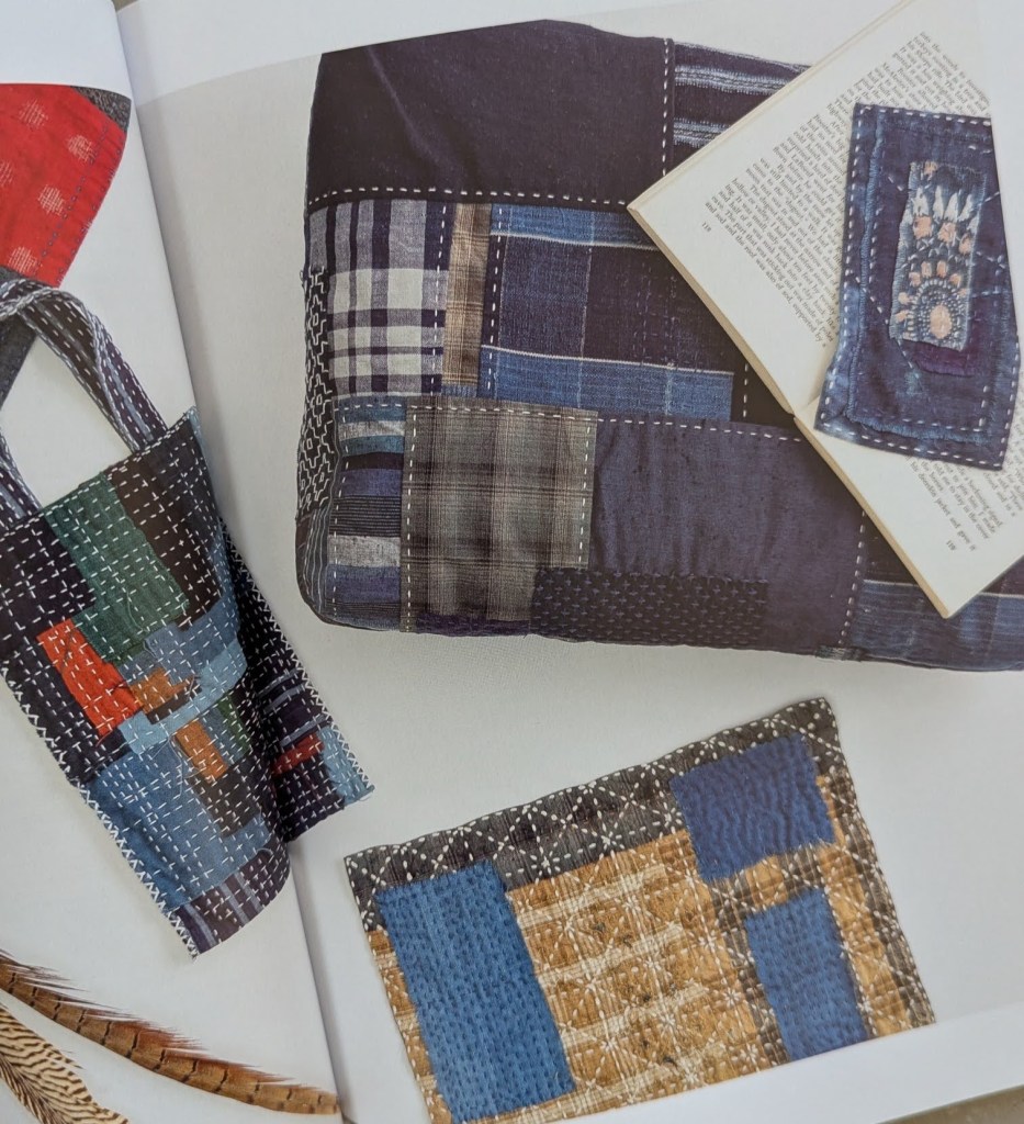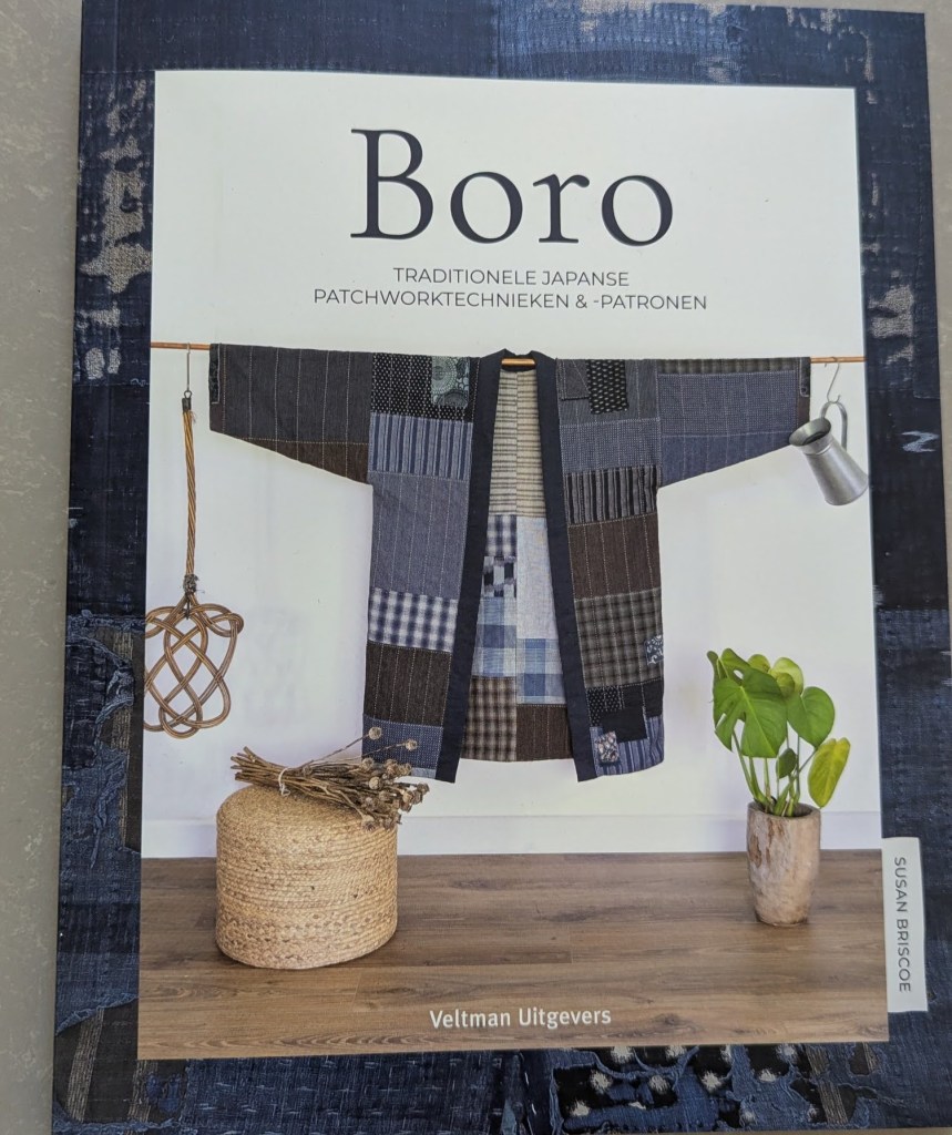 Boro is een Japanse techniek waarbij versleten textiel door middel van lappen en borduursteken wordt versterkt. Vroeger was dat noodzakelijk, tegenwoordig wordt het meer als kunstvorm toegepast. Je gebruikt rechte lijnen of Sashiko patronen voor het borduren. Met Kerst had ik een prachtig boek gekregen over Boro en afgelopen dinsdag zijn we met de groep Achterdoek aan wat kleine werkjes begonnen.