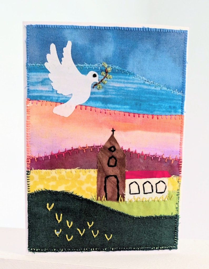 Jullie zullen allemaal wel gelezen of gezien hebben dat er vorige week ingebroken is in onze Martinikerk waarin het Zilvermuseum gevestigd is, al de zilveren mosterdpotjes en andere voorwerpen zijn meegenomen en waarschijnlijk inmiddels omgesmolten, de zilverprijs is hoog op het ogenblik. Erg jammer, het museum trok toch veel bezoekers. Gelukkig kon de kerk afgelopen zondag gewoon gebruikt worden. Wij hebben het geluk dat er twee oud-predikanten in Doesburg wonen die regelmatig voorgaan en inspringen waar nodig en zondag vierden we het 50-jarig predikantschap van Bram Grandia met koffie en gebak, een glaasje en hapjes. Ik had een kaart voor hem gemaakt, natuurlijk met een vredesduif, Bram is overtuigd pacifist.