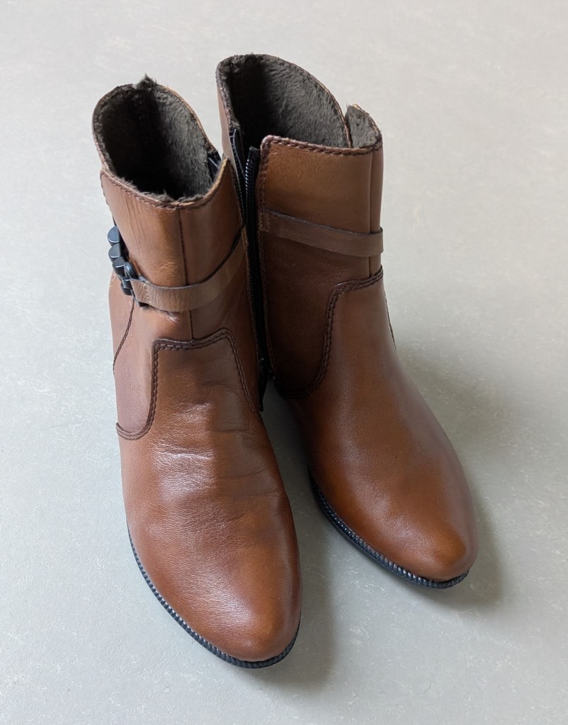 Gisteren stond er in de krant een artikel over de schoenredders van Enschede, een bedrijf genaamd 95 percent die teruggestuurde merkschoenen opkoopt die anders in de vuilverbranding terecht komen of naar Afrika gaan. De schoenen zijn zo goed als nieuw, vandaar de naam 95 percent en worden in de werkplaats zo nodig opgeknapt, van de 20 werknemers zijn er 10 schoenmaker. Ik zocht nog een paar bruine enkellaarsjes en vond een paar leuke op hun website, vandaag kwamen ze al, ze passen goed en ik vind ze hartstikke leuk.