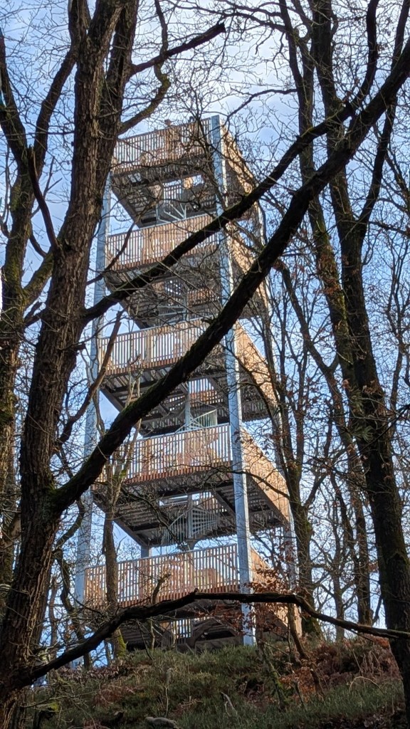 Op de Trapjesberg staat sinds kort een nieuwe uitkijktoren en daar wilde ik wel op, eerst 58 treden om bij de toren te komen, toen kreeg ik eigenlijk al spijt, maar ik ben toch doorgegaan, nog eens 110 treden!