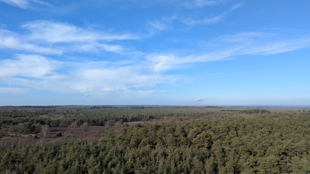 Boven aangekomen kon je heel ver kijken, al was het niet helemaal helder, op het bord stond dat je dan Zutphen, Deventer en Apeldoorn kan zien liggen.