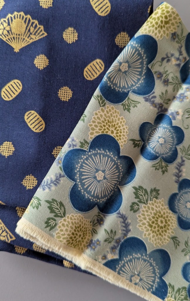 Mieke had ook een idee over wat ze wil gaan maken, maar maakte eerst het lapje met Sashiko af waar ze vorige keer aan begonnen was, helaas ben ik vergeten een foto te maken maar het zal vast binnenkort op haar eigen blog te zien zijn. Ze had mooie stofjes meegebracht en we hebben nog wat geruild, zij een stukje van mijn donkerblauw en ik een stukje van haar bloemen.
