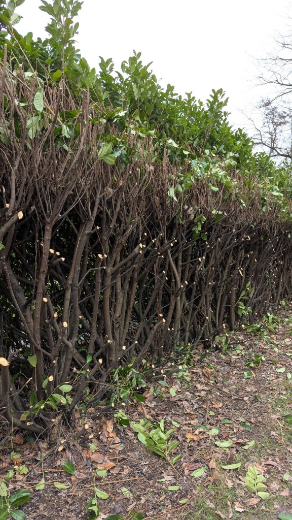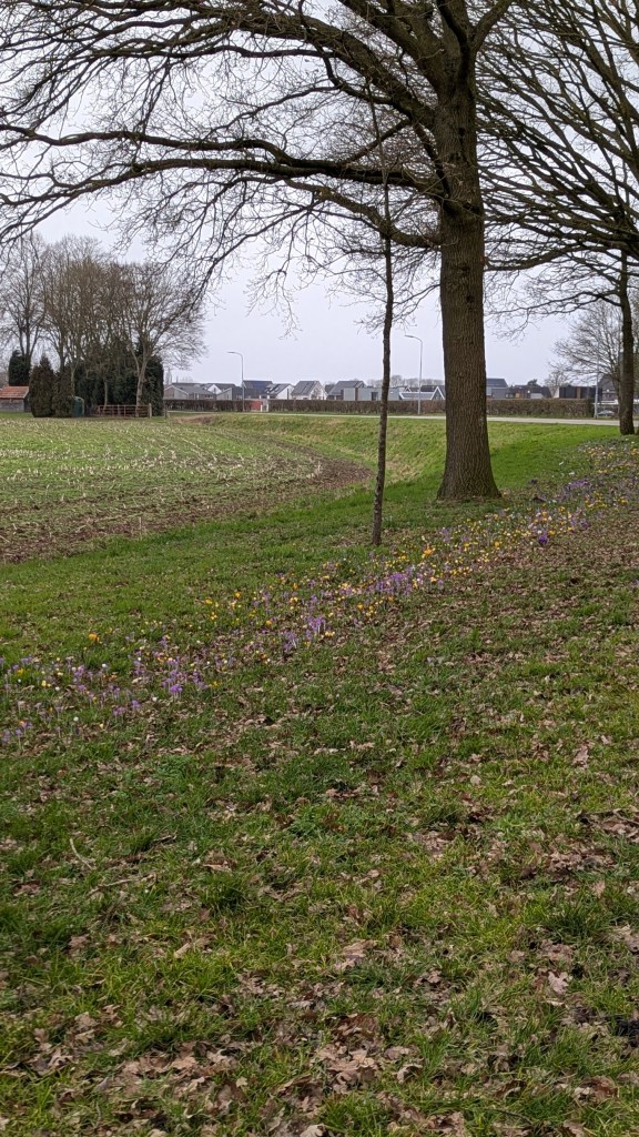 De krokussen rond Angerlo bloeien weer zoals elk jaar en bij het tunneltje hebben ze heel veel gesnoeid waarna ze een mooie takkenril hebben gemaakt.