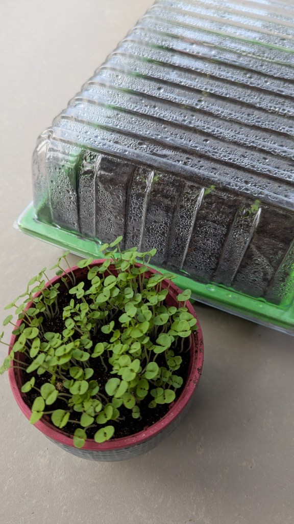 Binnen heeft Aat al wat voorgezaaid: basilicum en pepertjes.