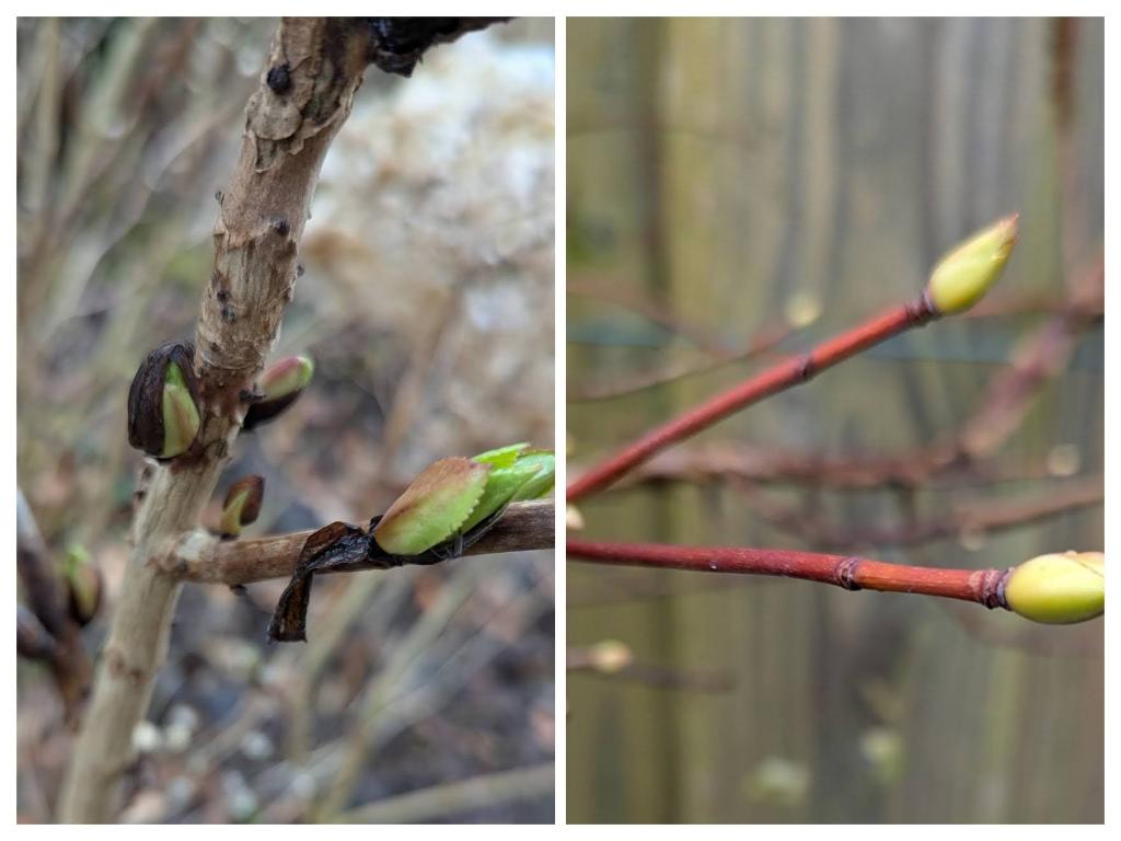Volgens het weerbericht krijgen we vandaag een lenteachtige dag, al blijft het hier in het oosten wat langer bewolkt. In de tuin is het al zichtbaar, de bollen komen op en er komen nieuwe knoppen aan de struiken.