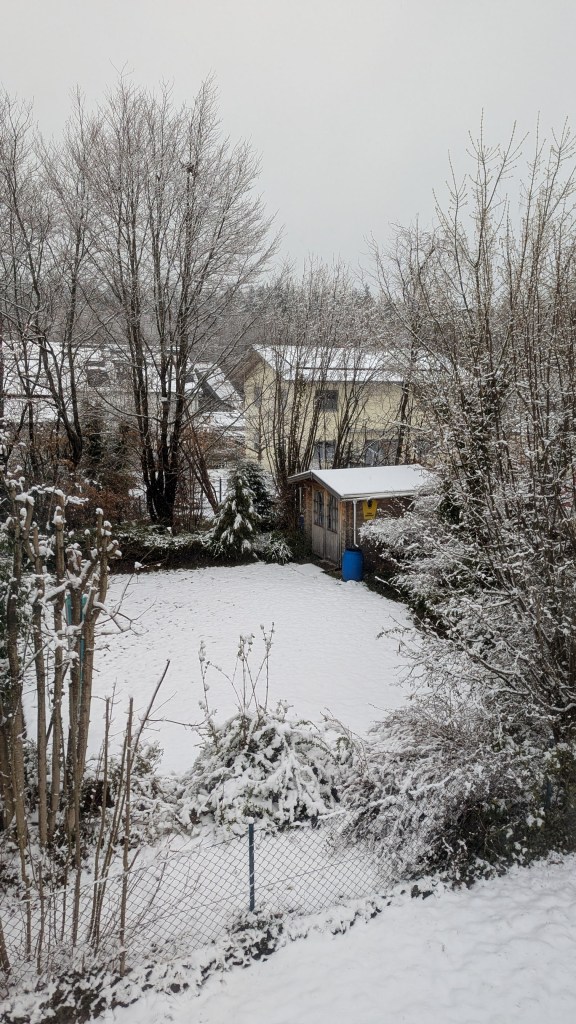Buiten de vele bezoekjes aan ons kleinkind hebben we ook nog wat van de omgeving gezien. We hadden een mooi appartement, heel erg compleet, er stonden zelfs paraplu’s, overal rolluiken voor de ramen, vaatwasser, oven, wasmachine enz. De volgende ochtend zagen we dat het behoorlijk gesneeuwd had, al was het wel heel plaatselijk.