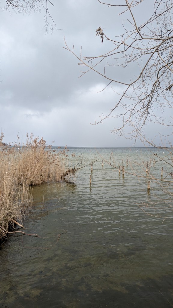Zoals je ziet lag hier al geen sneeuw meer. ’s Avonds hebben we pizza gegeten bij trattoria da Lucia in Kottgeisering en hebben we ook pizza’s bij Derk en Natasha gebracht. De volgende dag zijn we naar de Ammersee gereden waar we een wandeling gemaakt hebben rond en door Diessen am Ammersee. We hadden tijdens de wandeling gelukkig goed weer, daarna begon het weer flink te regenen, er zit ongeveer een uur tussen deze twee foto’s.