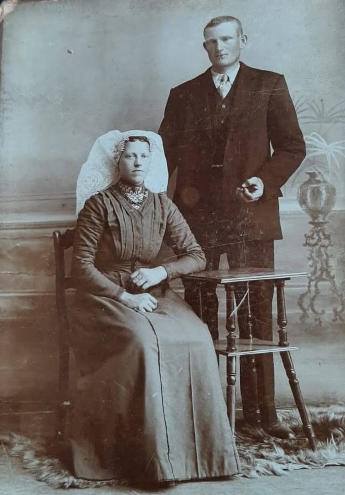 Zodra ik dit onderwerp op Conny’s blog gelezen had wist ik al welke foto ik hiervoor zou gaan gebruiken. Ik ben genoemd naar mijn oma van moeders kant en dit is de enige foto die ik van haar heb. Ze staat hier op met mijn opa, ik weet niet precies hoe oud ze toen waren, misschien net getrouwd. Ik weet ook niet of ze vaker klederdracht droeg, eigenlijk weet ik helemaal niets over haar. Wat eigenlijk wel gek is, mijn opa heeft altijd bij mijn ouders ingewoond toen die getrouwd waren en is 94 jaar oud geworden, ik heb hem dus heel lang meegemaakt. Dit is de foto waar het om gaat.
