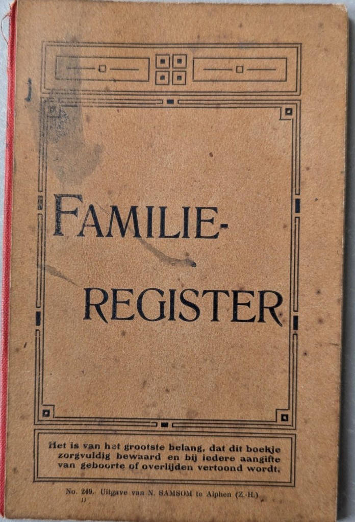 Maar er werd thuis nooit over mijn oma gepraat, wat ik achteraf wel heel jammer vind. Gelukkig heb ik wel hun familieregister in bezit, zodat ik wat gegevens heb.