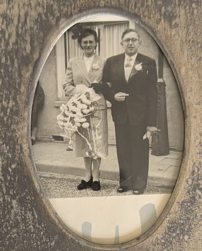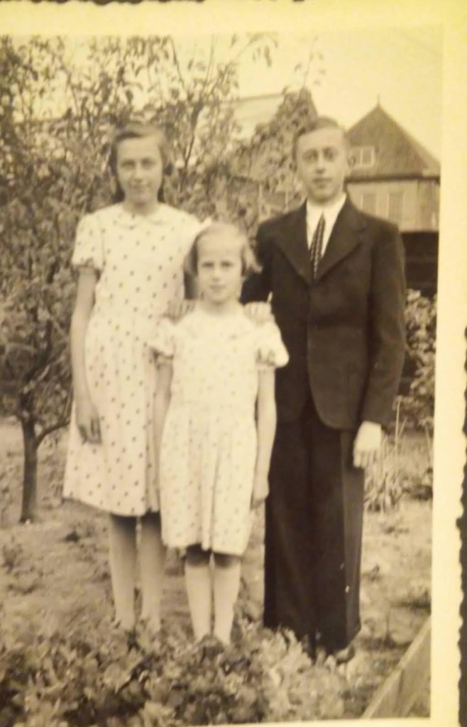 Mijn vader met zijn twee zussen en een huwelijksfoto van mijn ouders: