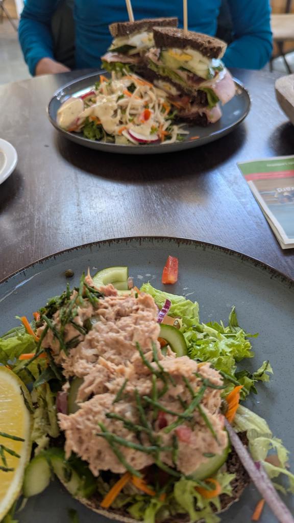 In onze wandelmap zat nog een folder met de Scholeksterroute bij Oostvoorne en omdat we op zondag weer naar huis gingen vanaf Goeree-Overflakkee wilden we die gaan lopen. We parkeerden bij de Tenellaplas en daar bleek dat de route iets veranderd was en tegenwoordig de Vogelboulevard route heet. Je volgt knooppunten, lekker makkelijk.